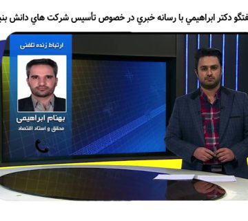 گفتگو دكتر ابراهيمي با بخش خبر،در مورد تأسيس شركت هاي دانشبنیان، راه حل مشکلات کشورواحد ارتباطات و رسانه3 فوریه 2025دکتر ابراهیمی در گفتگو با بخش خبری صدا وسیما، با اشاره به فرمایشات مقام معظم رهبری در مورد اداره کشور ... ادامه مطلب